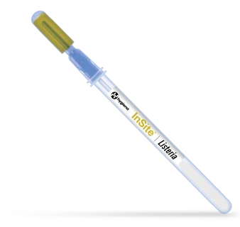 Hygiena InSite Listeria es una prueba ambiental autónoma y fácil de usar para la detección de Listeria. Cada dispositivo contiene un medio líquido cromogénico formulado con antibióticos, potenciadores del crecimiento y compuestos que cambian de color específicos de la especie. Además, todos los dispositivos InSite contienen neutralizadores en la solución humectante para ayudar a combatir los posibles efectos secundarios del desinfectante y optimizar la recolección de muestras. Simplemente frote el área de prueba y espere. Un cambio de color después de 24 a 48 horas de incubación se considera un posible positivo. No se requieren equipos de laboratorio costosos ni manipulación adicional de la muestra. InSite Listeria (ILC050 / ILC100) de Hygiena está certificado por AOAC RI como Método de Rendimiento Probado™ en superficies de acero inoxidable, cerámica y plástico.