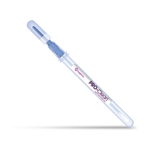 PRO-Clean es la forma más fácil y precisa de verificar la limpieza de las superficies de los equipos alimentarios. Simplemente frote una superficie y libere el reactivo. Si hay residuos de proteínas, el reactivo se volverá púrpura: cuanta más contaminación, más rápido cambia el color y más oscuro se vuelve. PRO-Clean valida instantáneamente la higiene de la superficie, lo que permite tomar medidas correctivas inmediatas cuando sea necesario.